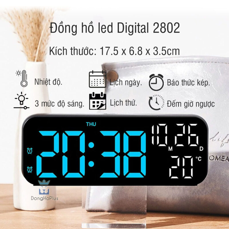 Đồng hồ để bàn 2802 sử dụng nguồn điện qua cổng 5v1a, pin 3a dùng để lưu thời gian khi mất điện không phải cài đặt lại.